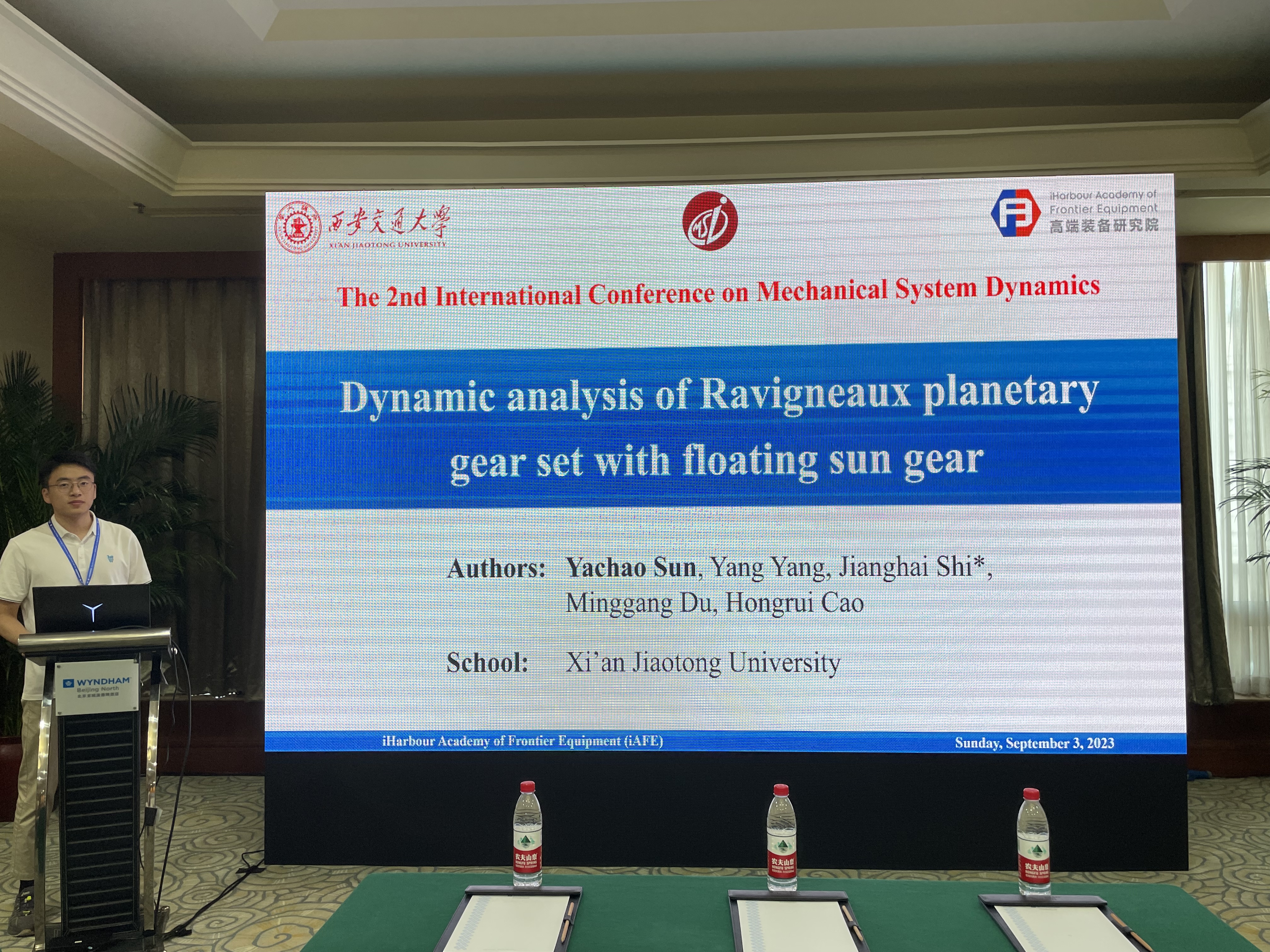 2023年09月,博士生孙亚超参加The 2nd International Conference on Mechanical System Dynamics国际会议,并作报告。题目为《Dynamic analysis of Ravigneaux planetary gear set with floating sun gear》。