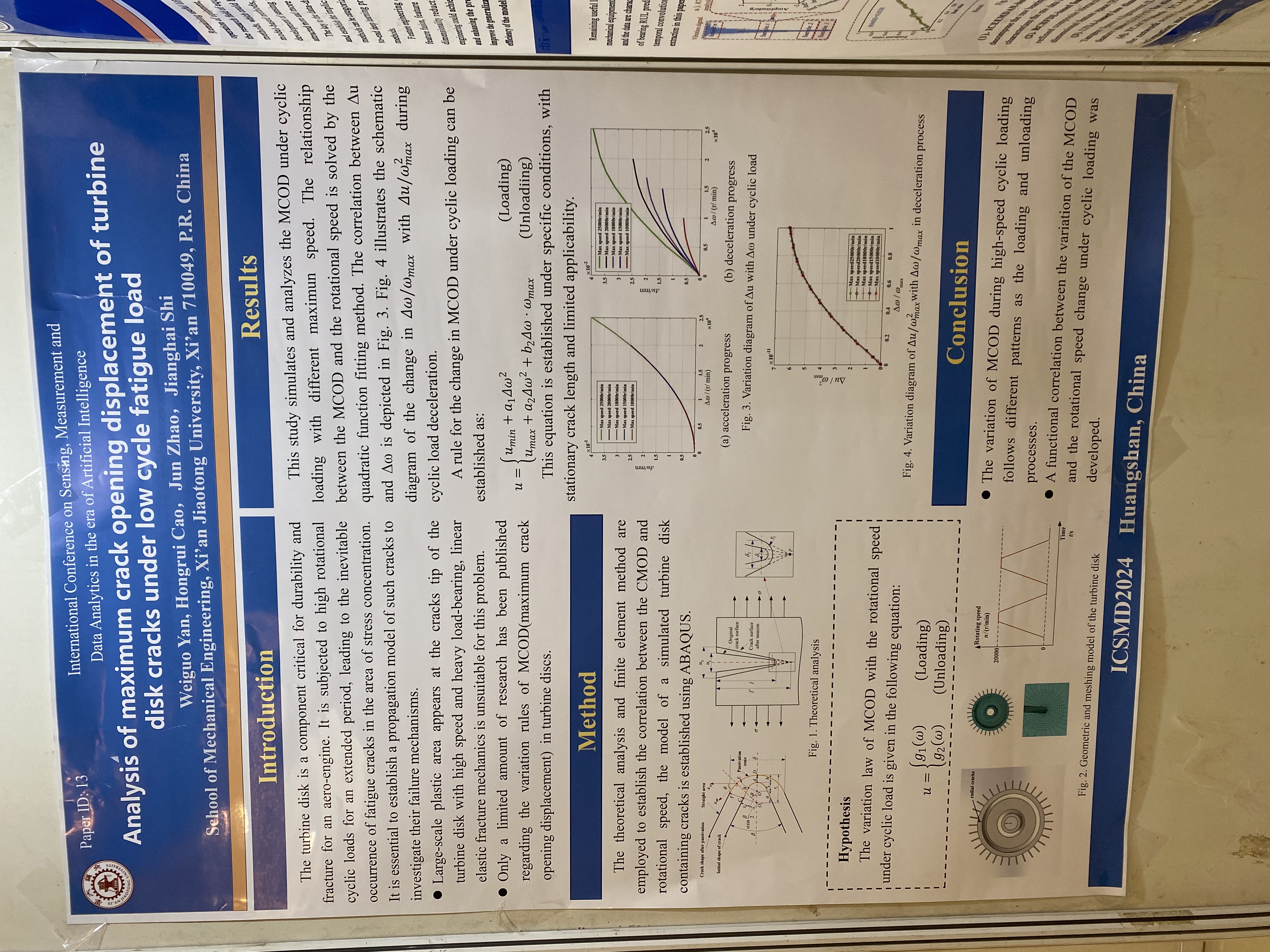 2020年,10月博士生付洋参加ICSMD 2020 International Conference onSensing,Measurement and Data Analysis in the Era Of Artificial Intelligence会议,并作报告。题目为《RUL prediction for turbine disc based on high-order particle filtering》。