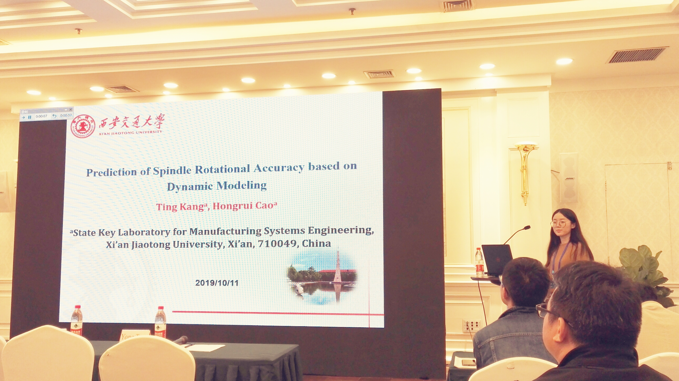 2019年10月,硕士生康婷参加在沈阳举办的第十八届国际制造会议暨中国工程院国际制造技术高端论坛、第十六届沈阳科学学术年会,并作报告。题目为《Prediction of Spindle Rotational Accuracy based on Dynamic Modecling》。
