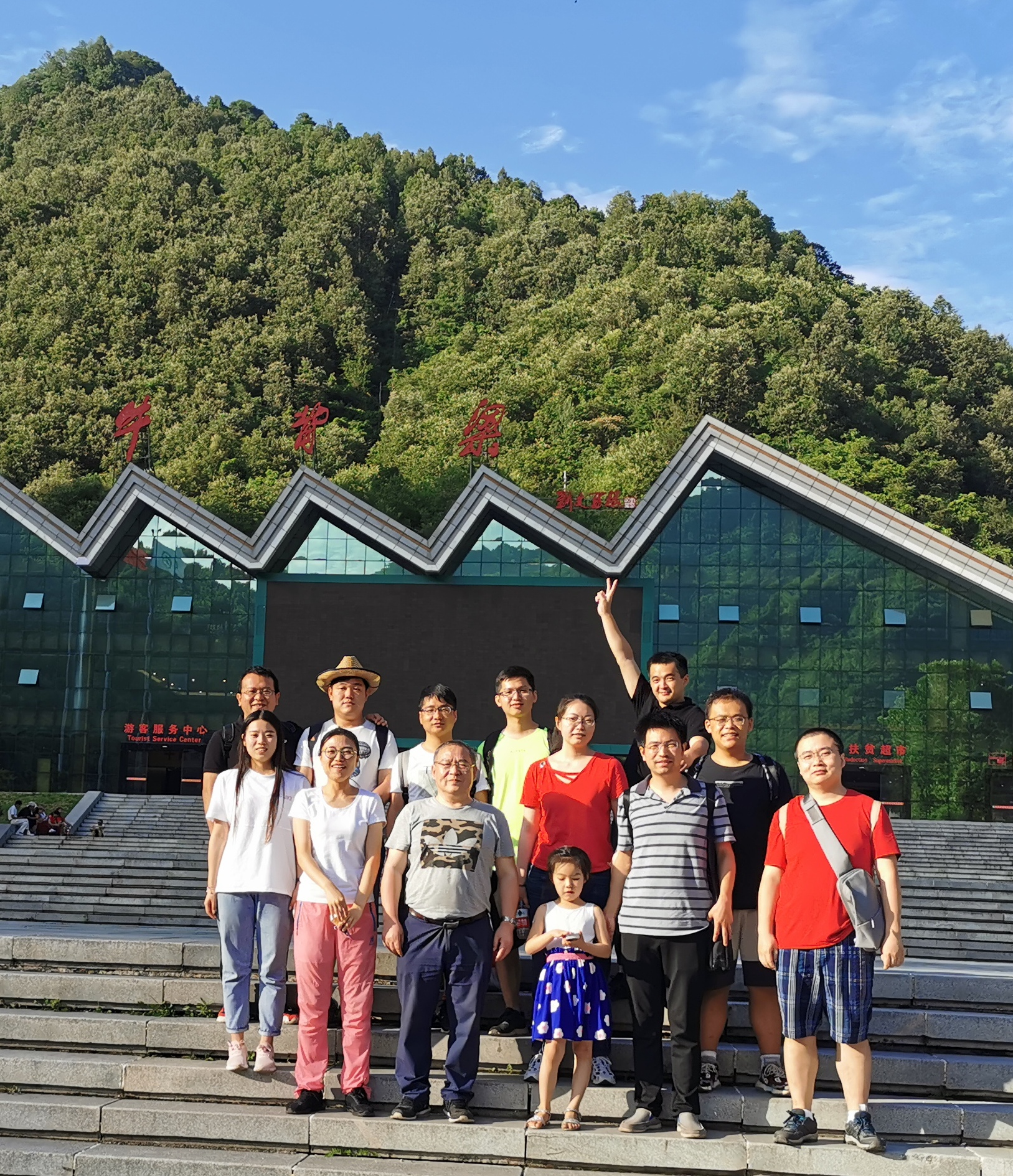 山顶合影,远处一片云海