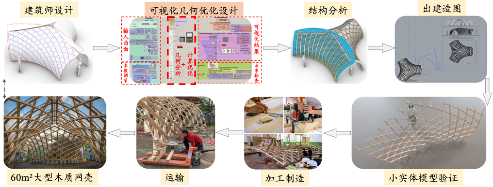 应用成果二:开发面向建造的可视化计算工具,成功建立大型网壳结构