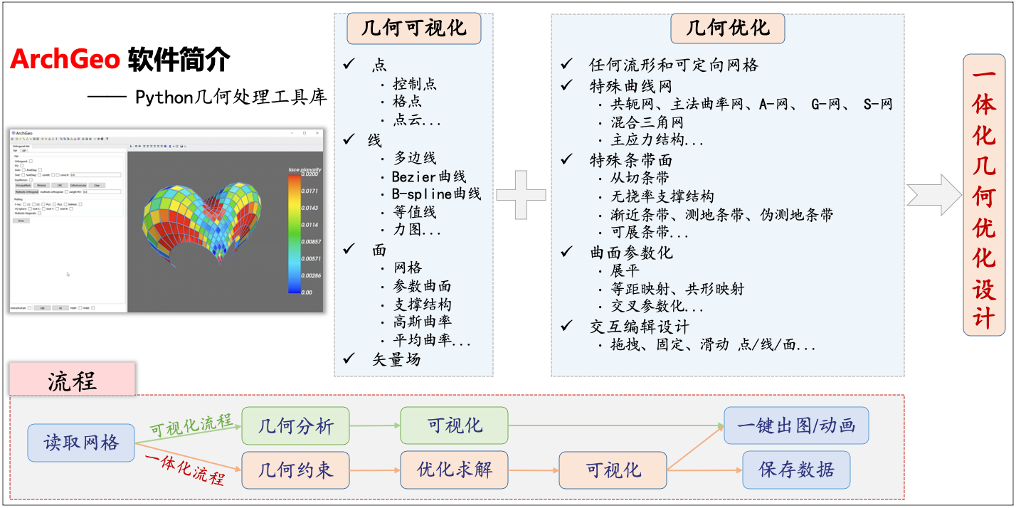 应用成果一:开发的兼具几何可视化与几何优化的几何处理软件ArchGeo