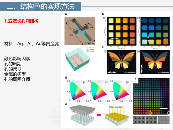 自人类诞生以来对色彩的追求都没有停下脚本,人眼看到的颜色由两种实现方式即颜料色和结构色,结构色因其具有鲜艳的色彩和极高的稳定性以及可回收性和动态可调性等优越的性能而成为目前的研究热点之一。王方园硕士首先对颜色产生机制以及结构色的机理进行介绍。