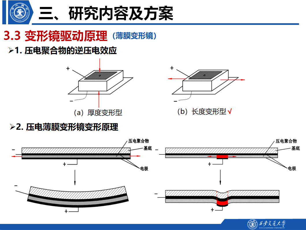 王赫男硕士提出了一种变形镜的制造和控制方法,利用结构化电极操控大口径的柔性连续曲面,可实现工作面上任一点的多姿态操控。回避了复杂结构设计的精度低、成本高等问题,可实现大口径连续曲面、简单、低成本的变形镜制造,实现实时的复杂面形操控。