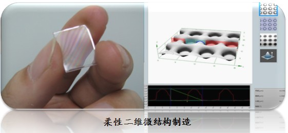 大面积微结构的纳米精度与纳米结构,将赋予构件许多美妙的性能。本团队所作的柔性二维微结构的应用面很广,如光学和光电子工程及生物医疗领域。