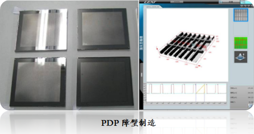 本团队制备的PDP障壁利用金属障壁结构可以复制出大量的障壁结构,实现批量化生产。障壁在彩色等离子体平板显示( PDP)中的作用是防止本单元的紫外光激发相邻单元的荧光粉,引起光的串扰;防止本单元的电荷及外加电场作用到不该作用的相邻单元引起电串扰。另外,由于障壁增加放电电荷存贮的表面积,增加了存储能力。九 微结构复型