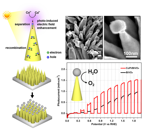 Co-Pi 助催化剂在BiVO4纳米线棒列上的选择性生长与光电化学制氢性能 Nano research
