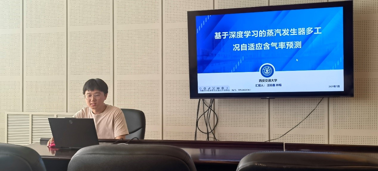 会议期间,研究生汪标鑫作题为《基于深度学习的蒸汽发生器多工况自适应含气率预测》的论文报告,介绍了课题组在复杂工况下含气率建模与智能预测方面的研究进展,获得了与会专家的积极关注与肯定。