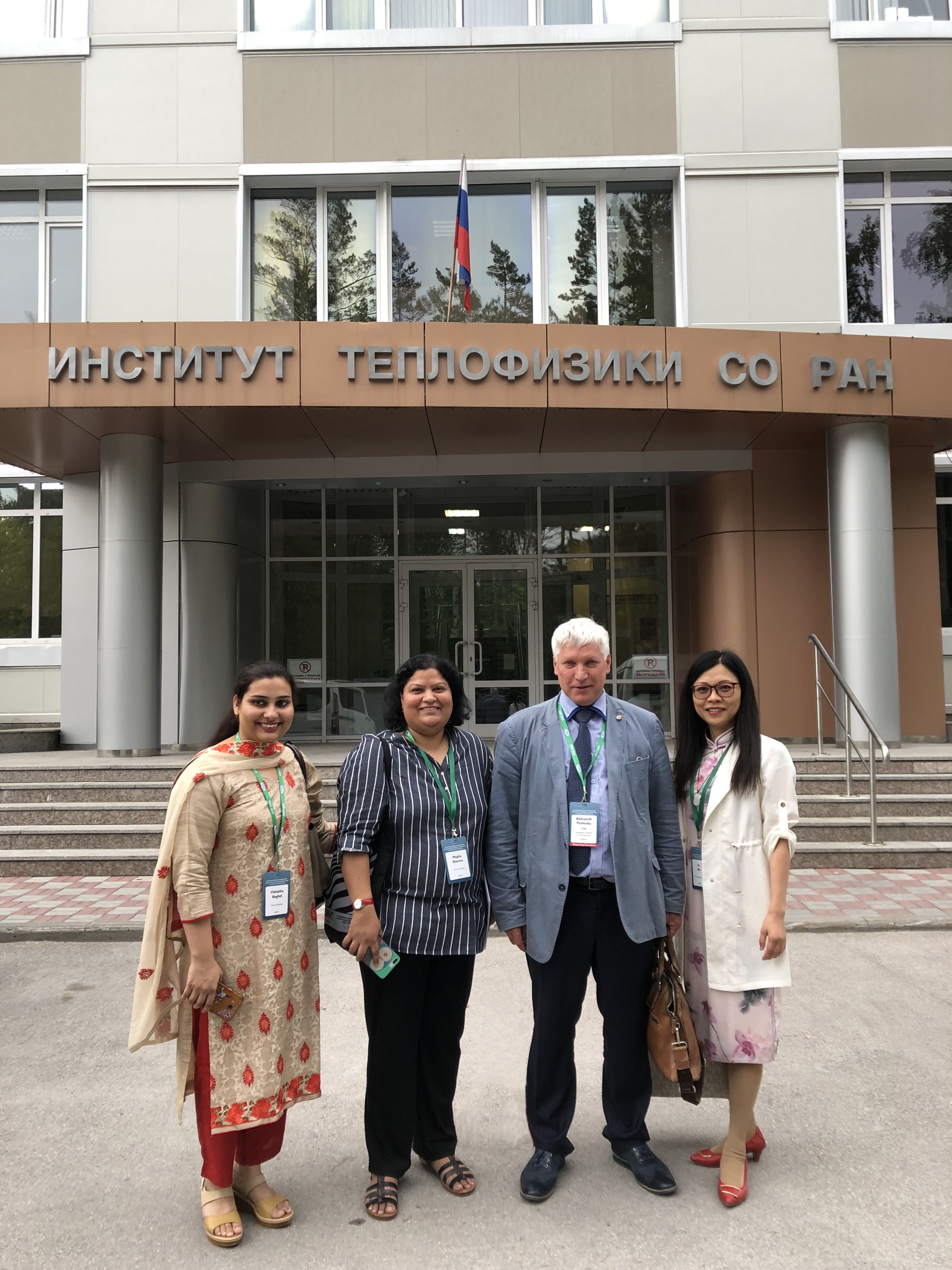2019年12月AMACEE会议王晓宇作报告 2019年12月苏博和王晓宇参加国际会议 2019年8月与会议主席和印度教授合影 2019年8月与JEHT主编郭教授合影