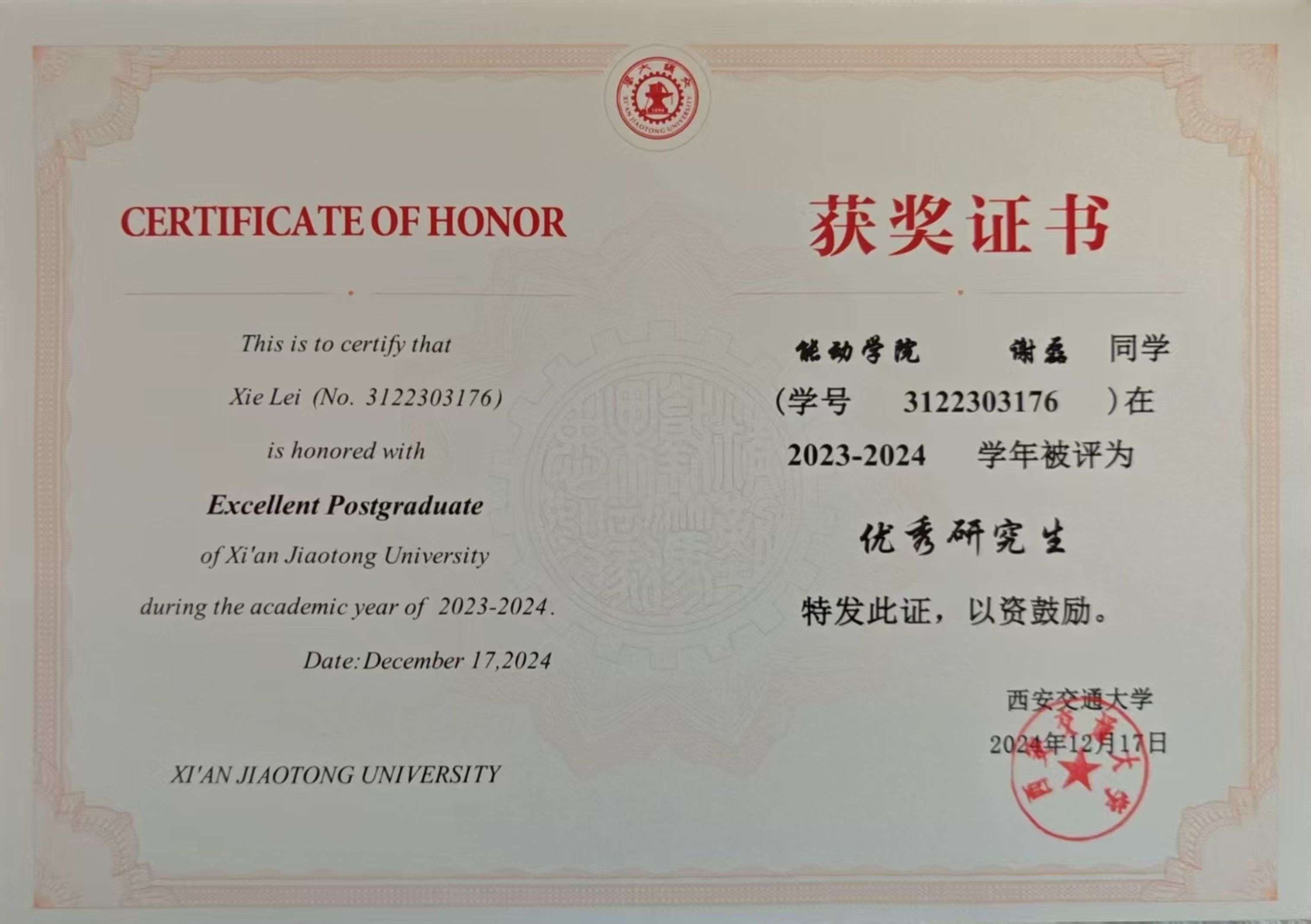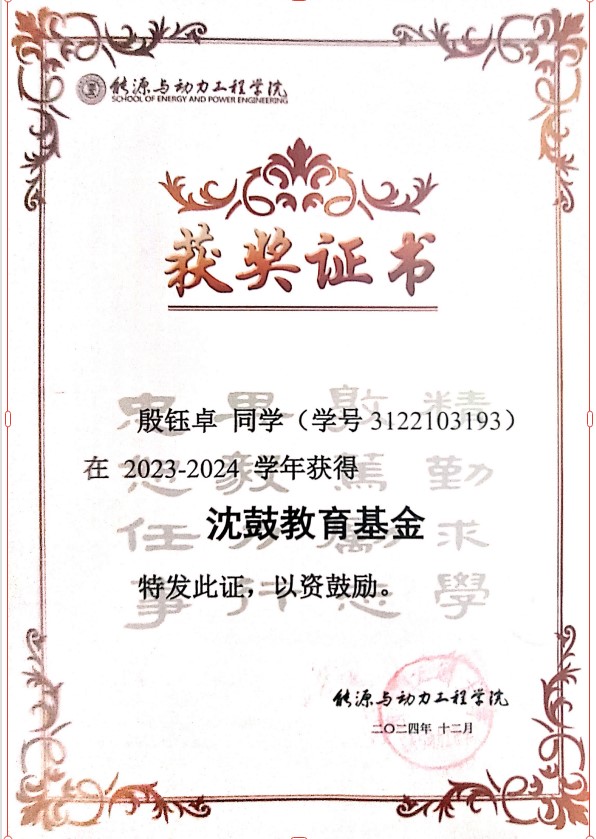 谢磊-优秀研究生 (2024) 殷钰卓-沈鼓奖学金(2024)