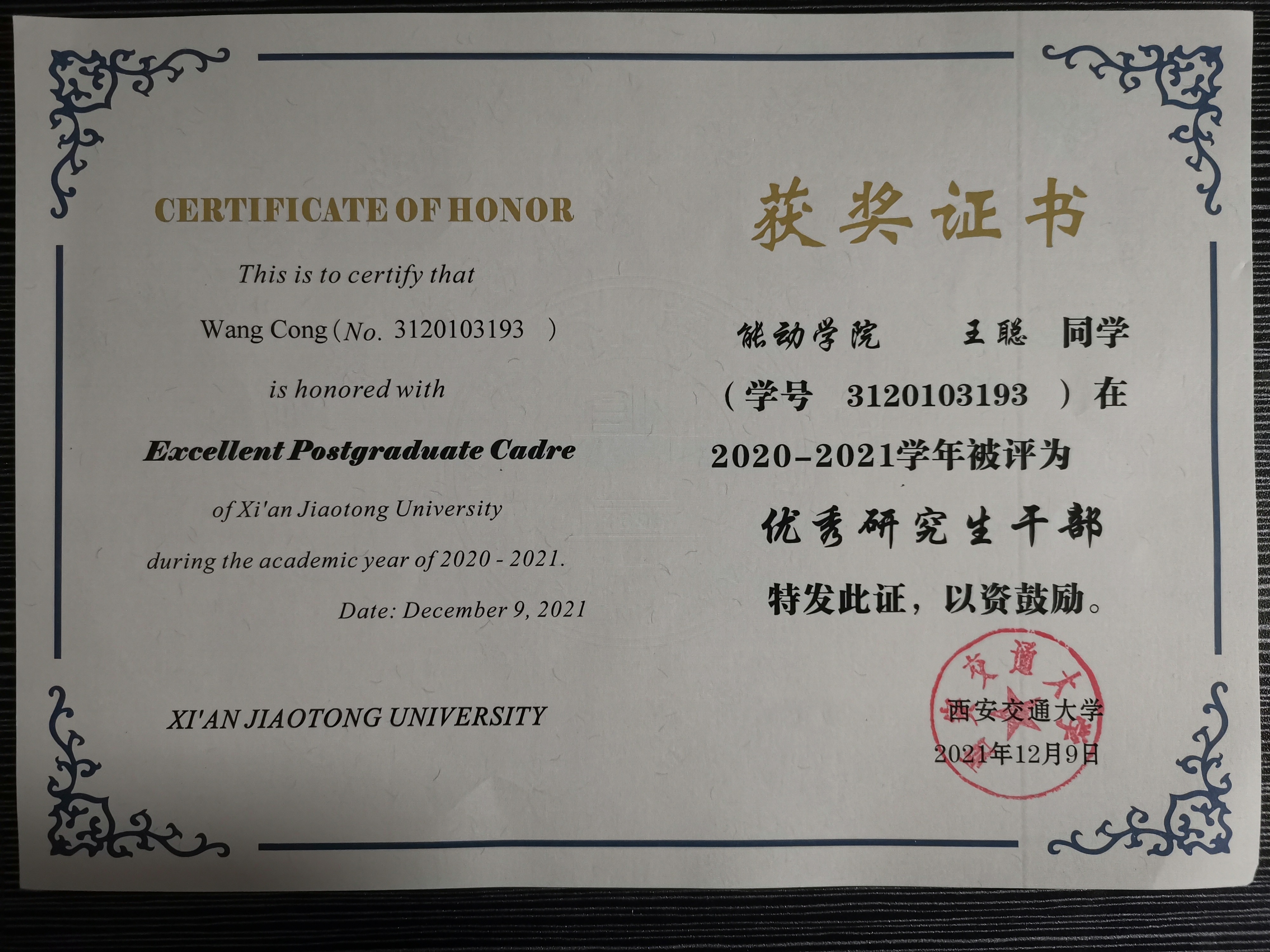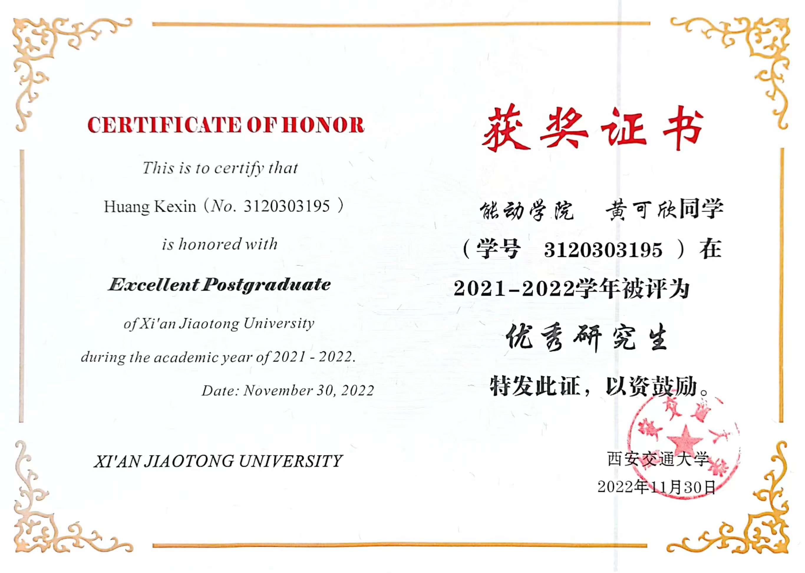 黄可欣-优秀研究生(2022) 王聪-优秀研究生干部(2022) 王晓宇-校级优秀硕士论文(2021)