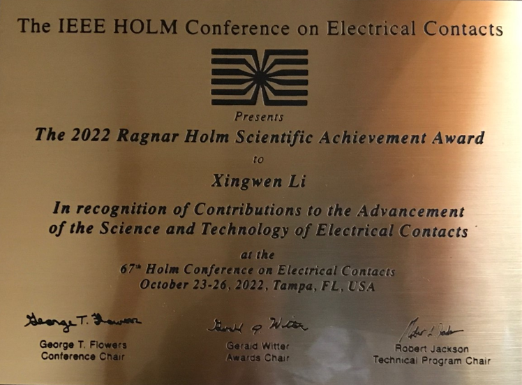 李兴文教授获2022年度IEEE Ragnar Holm科学成就奖