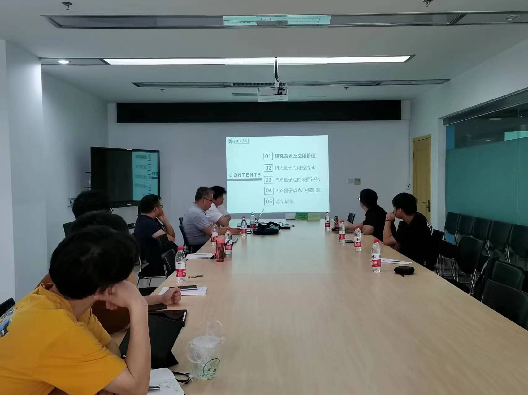 6月1日上午,西安工业大学刘欢教授到访课题组,西安工业大学赵季杰博士和博士生文帅分别作了量子点红外成像技术与量子点合成调控机制方面的学术报告。双方就量子点红外成像技术进行了交流讨论。课题组参加会议的有王久洪和江新兵老师,以及在校研究生。