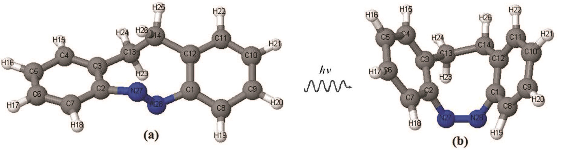 Fig2. 利用激光脉冲实现二苯乙烯分子的顺反异构化的分子动力学模拟
