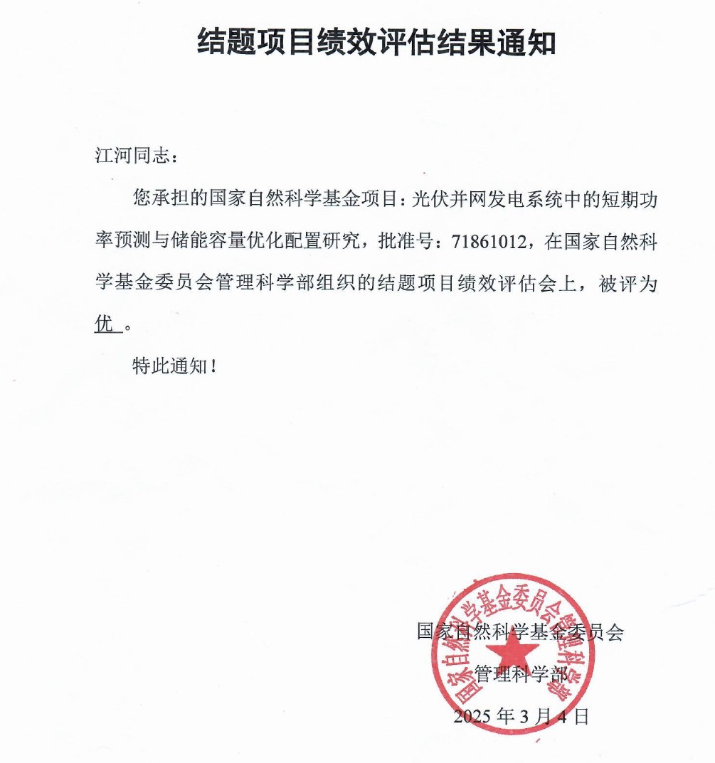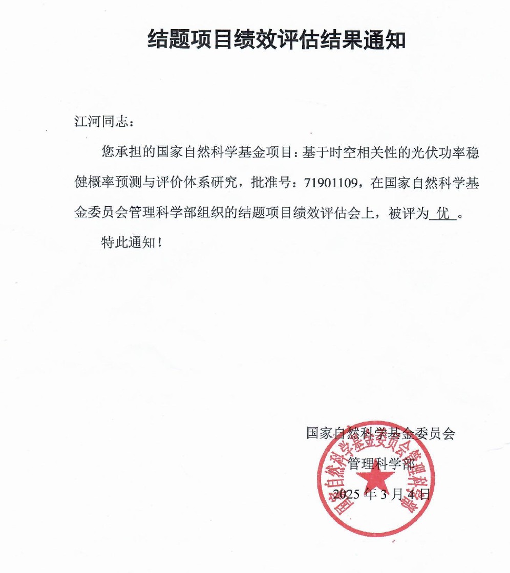 恭喜项目组负责人江河教授主持的两项国家自然科学基金项目绩效评估为优秀!