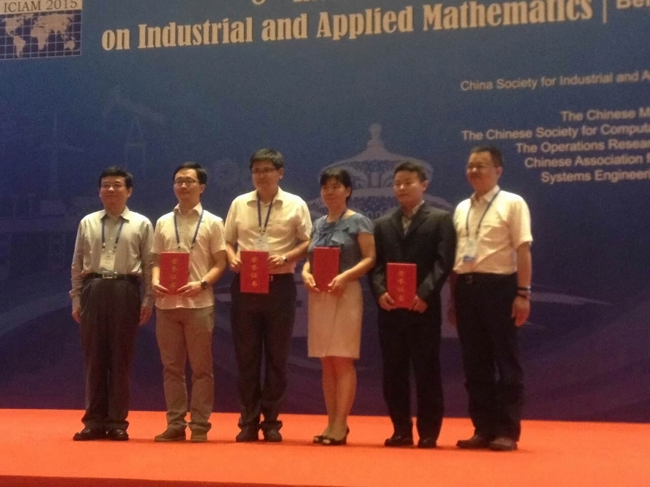 孙剑(左三)获中国工业与应用数学学会CSIAM优秀青年学者奖