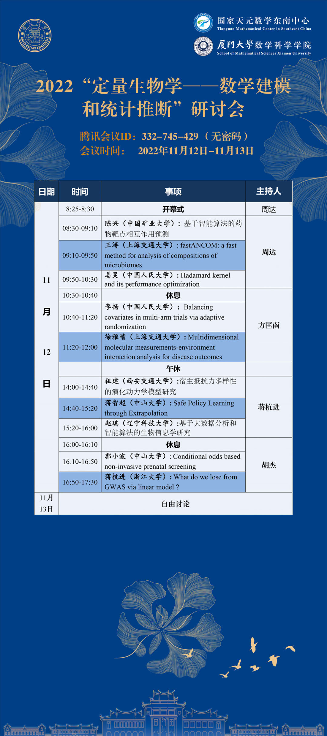 - 参加厦门大学举办的“2022定量生物学—数学建模和统计推断研讨会”