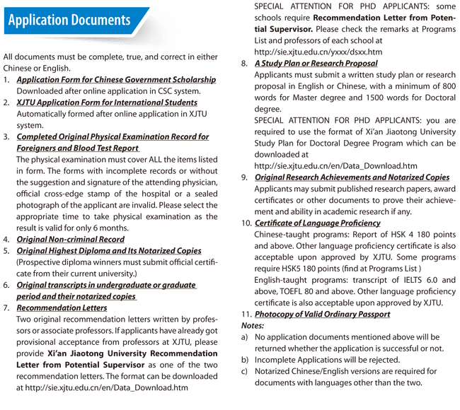 Note: Applicants for courses taught in Chinese may need to add one year of Chinese language study before starting his/her postgraduate academic program, depending on the proficiency level of the applicant in Chinese language.