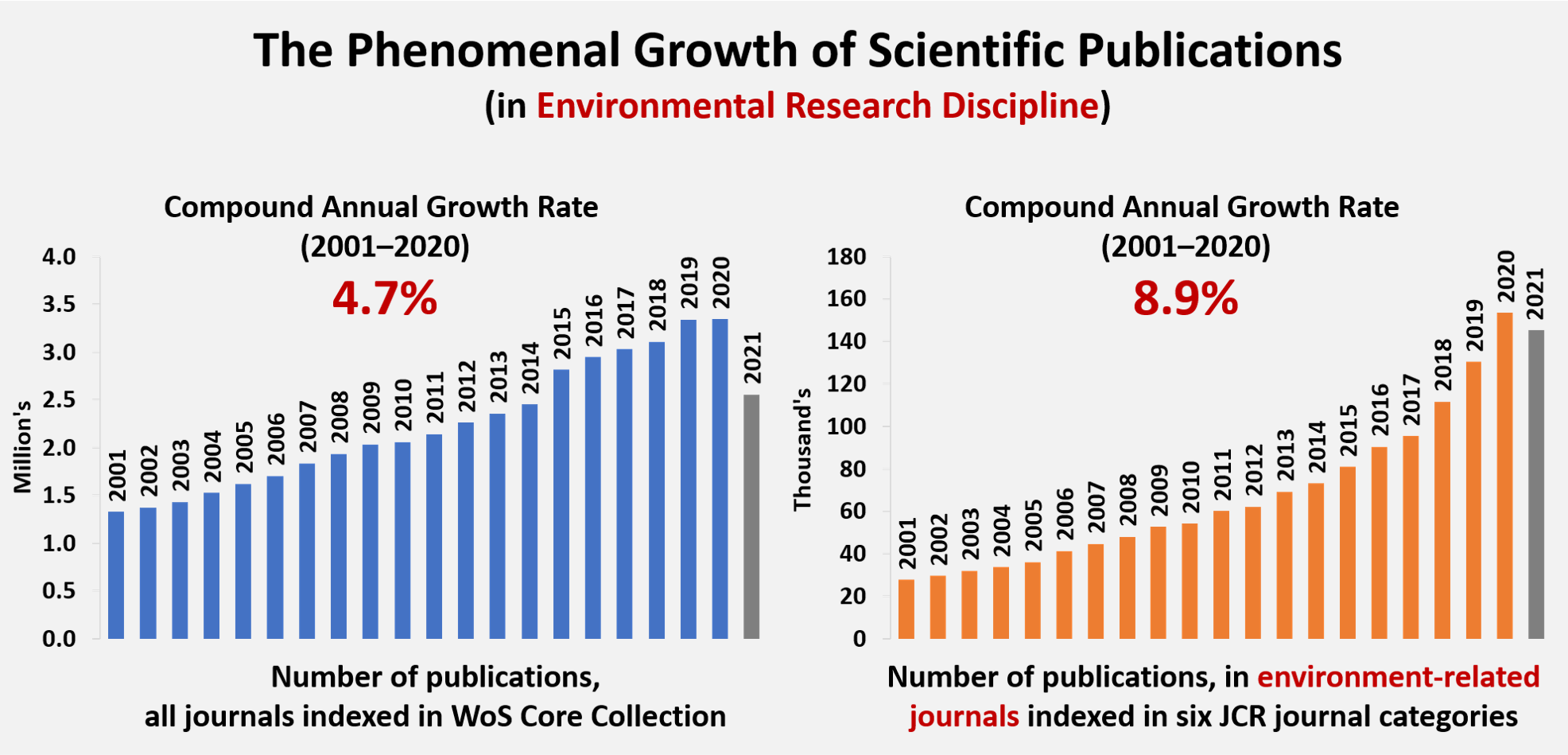 We all heard about Big Data. The explosive amount of information published in scientific literature makes 'big data' also a reality for scientists to munch on, day in and day out. For just about every research discipline, there are a countless number of publications. If you are stepping into a well-established research domain, even combing through the existing findings and gaps becomes a daunting task that can take weeks to months to accomplish. To put things into perspective, the number of scientific publications indexed in Clarivate® Web of Science Core Collection in the six environmental science categories has grown from 22,000 in 1990 to an astonishing 252,000 in 2022, an increase of 11.5-fold. And the number keeps growing.