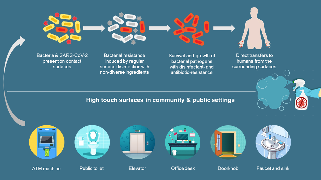 (Preprint version) Disinfectant- and antibiotic-resistance in community environments and risk of direct transfers to humans: Unintended consequences of community-wide surface disinfecting during COVID-19? Available at SSRN. http://dx.doi.org/10.2139/ssrn.3778406 (Date Written: 7 December 2020) PDF download