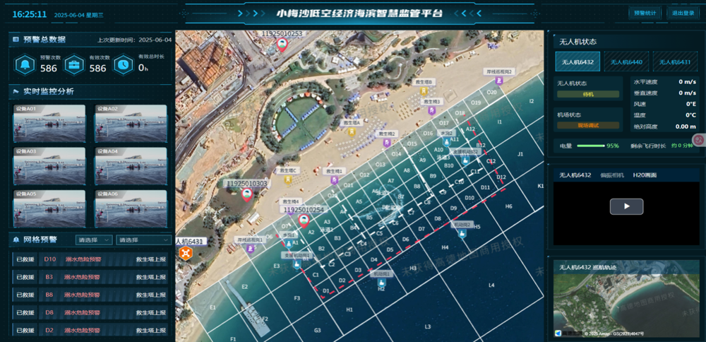 全国首创“低空自主巡航+多光谱偏振成像”穿透式监测技术。全国首次在海滨场景部署多光谱偏振成像系统与低空无人机自主巡航技术,运用独特的偏振光分离算法,有效排除海面反射、局部阴影等复杂动态干扰因素,即便在强逆光、多云等恶劣光照条件下,也能精准识别海面上的人体姿态和轮廓。