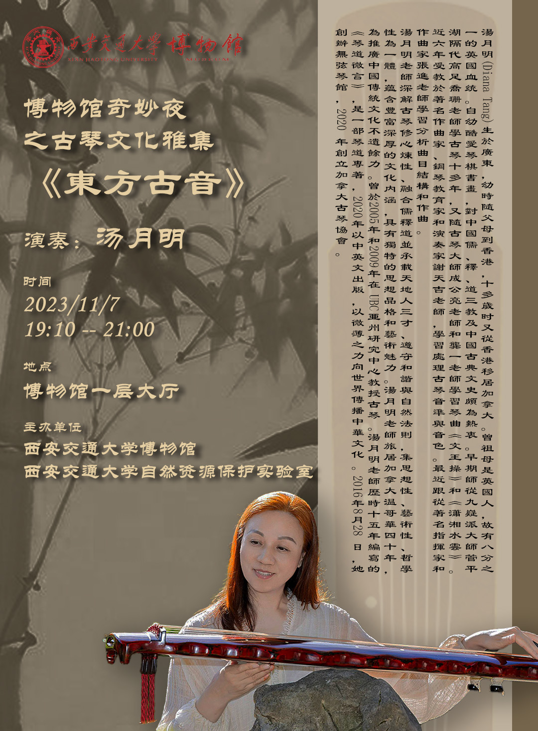 文章标题:加拿大古琴演奏家汤月明女士应马竞教授与西安交通大学博物馆邀请做古琴演奏专题讲座