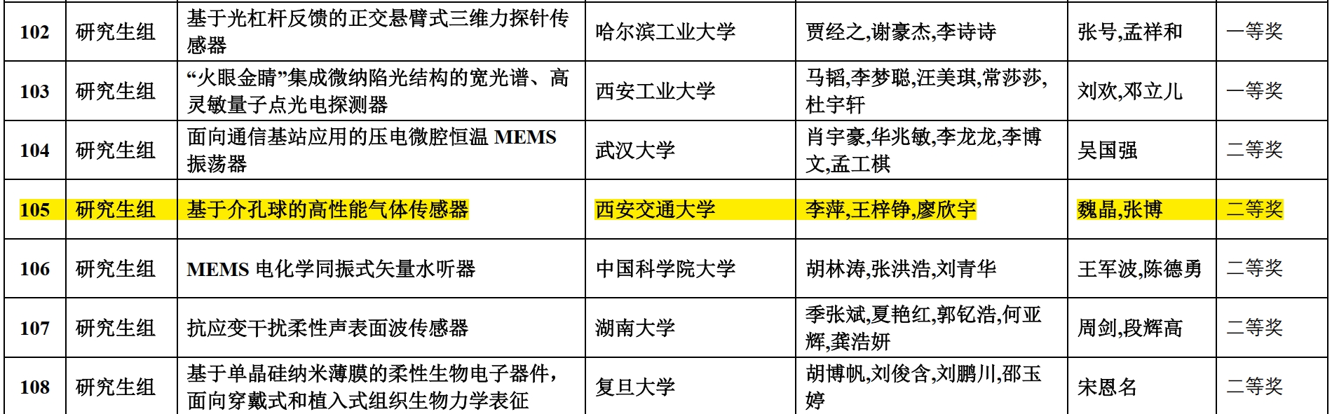 - 祝贺李萍等人获得中国大学生机械工程创新创意大赛:“明石杯”微纳传感技术与智能应用赛决赛二等奖