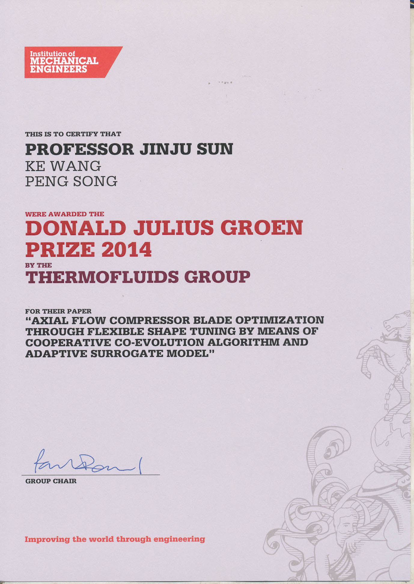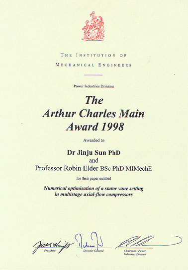 燃气轮机轴流压缩机设计理论和方法方面的研究,其创新性研究及成果得到国际同行广泛认可,先后两次获得英国机械工程师学会