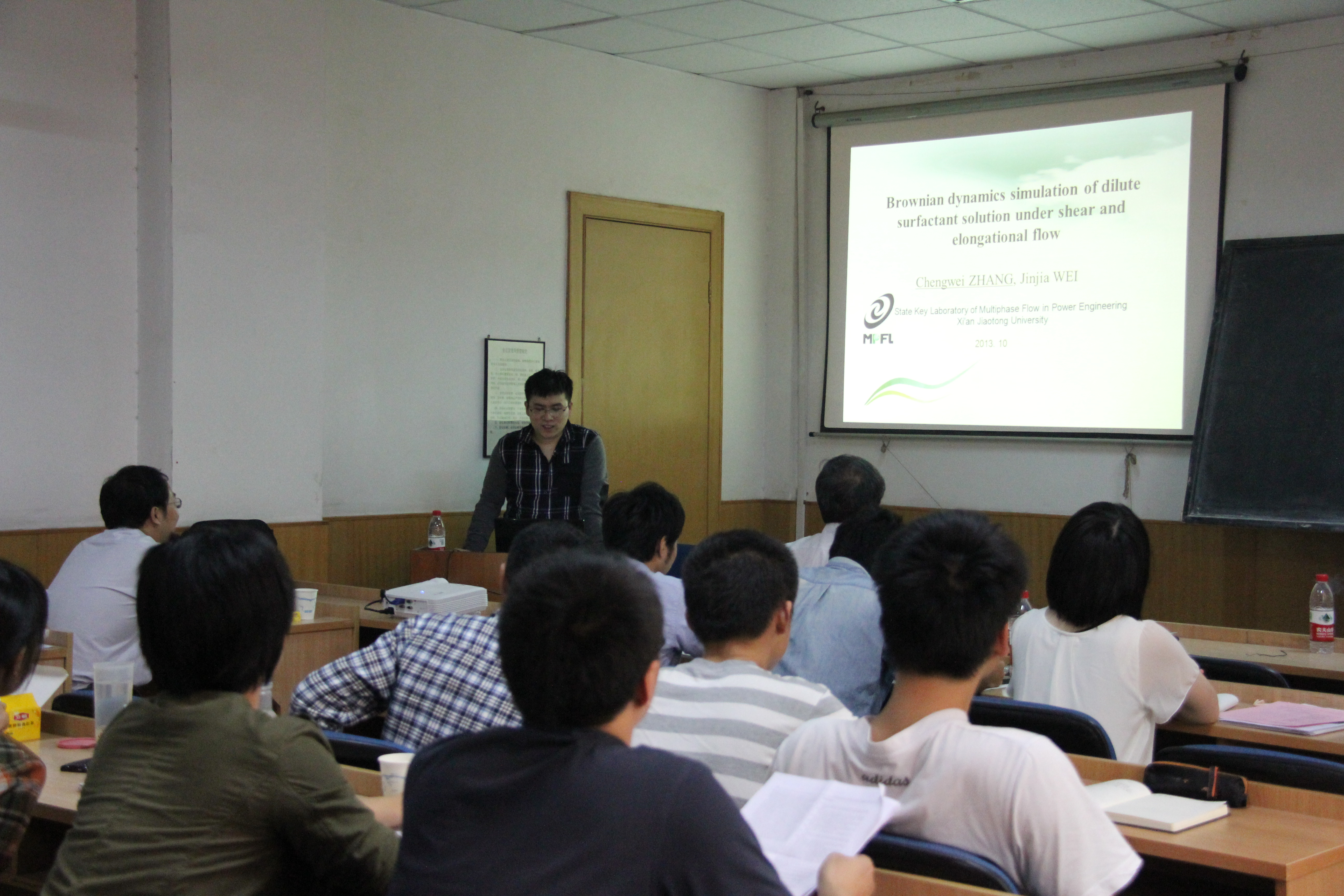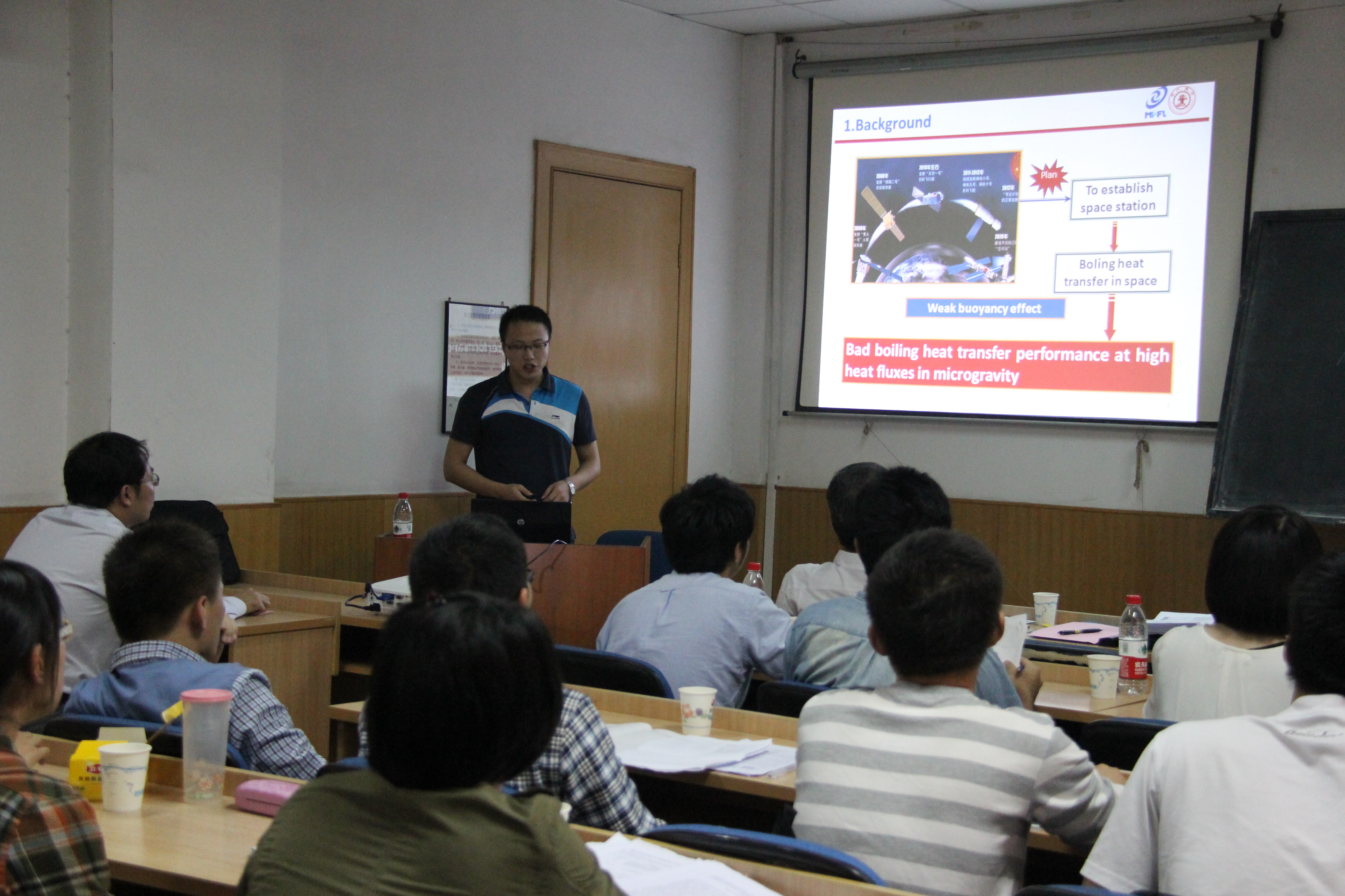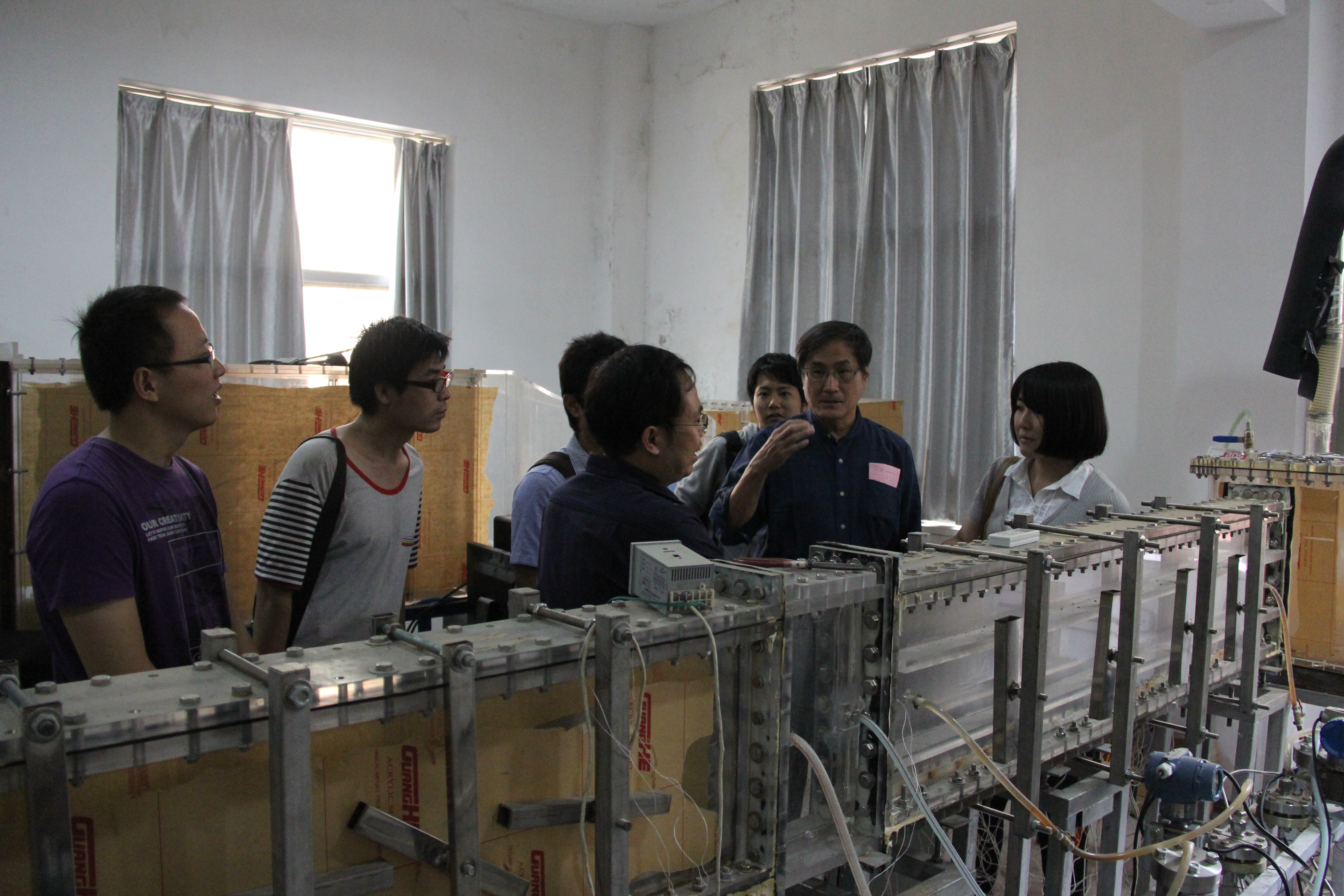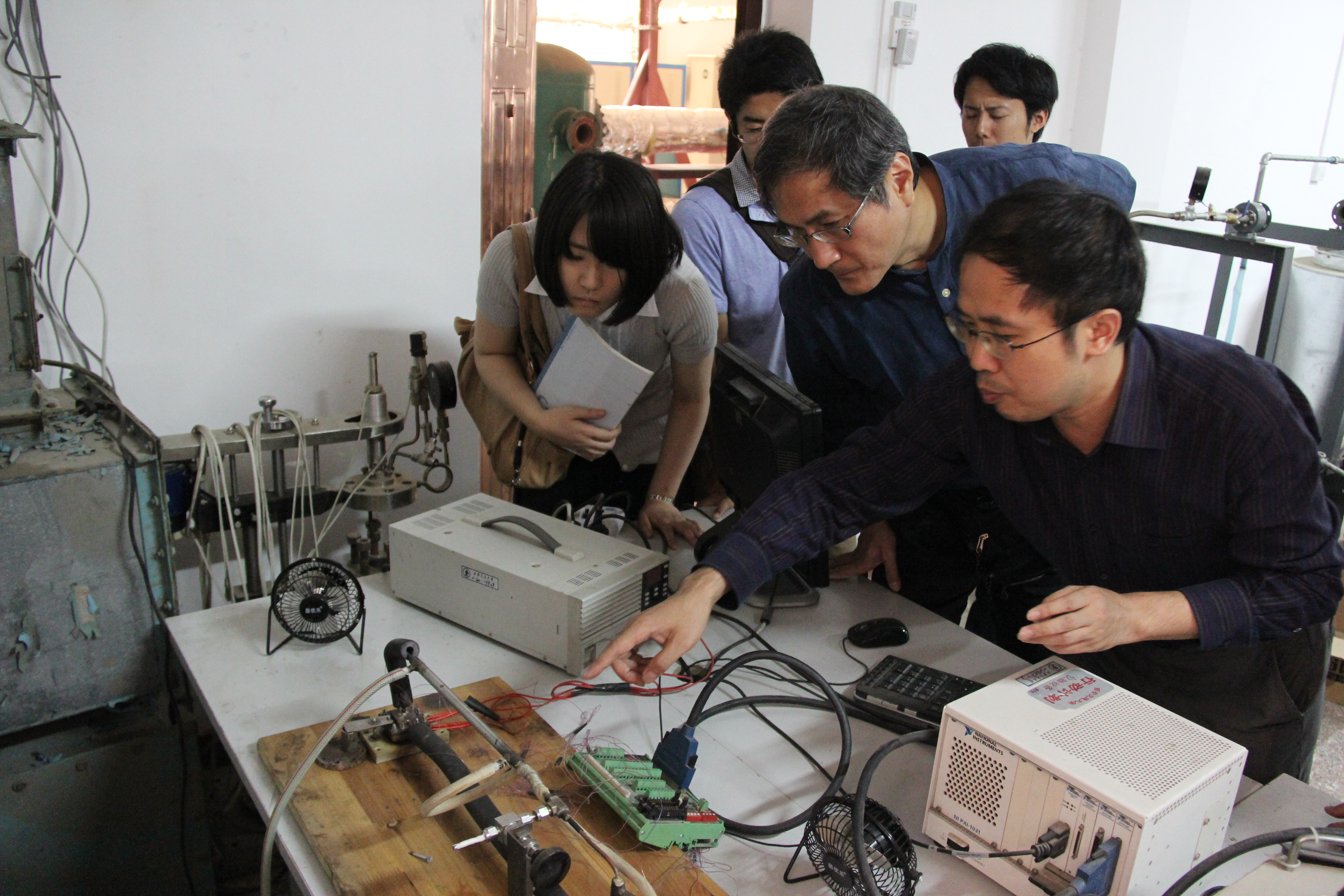 于10月7日组织了与东京理科大学川口靖夫教授课题组的多相流与传热研讨会,课题组博士生李振中、徐娜、张成伟、屠楠、张永海、孔新以及齐宝金老师等分别做了”Direct Numerical Study of the effects of Particle Parameters on a Particle-laden Flow“、”Combined Effects of Shear Stress and Temperature on Viscosity Characteristics of CTAC/NaSal Aqueous Solution“、”Brownian dynamics simulation of dilute surfactant solution under shear and elongational flow“、”Study on Uniformity of Surface Heat Flux for a Solar Cavity Receiver“、”Bubble Dynamics in Nucleate Pool Boiling on Micro-Pin-Finned Surfaces in Microgravity“、”Boiling Heat Transfer Enhancement by Nanofluid“以及”A Fractal Dropwise Condensation Heat Transfer Model Including the Effects of Contact Angle and Drop Size Distribution“的报告,双方进行了充分的学术交流。会后,川口靖夫教授课题组参观了实验室。