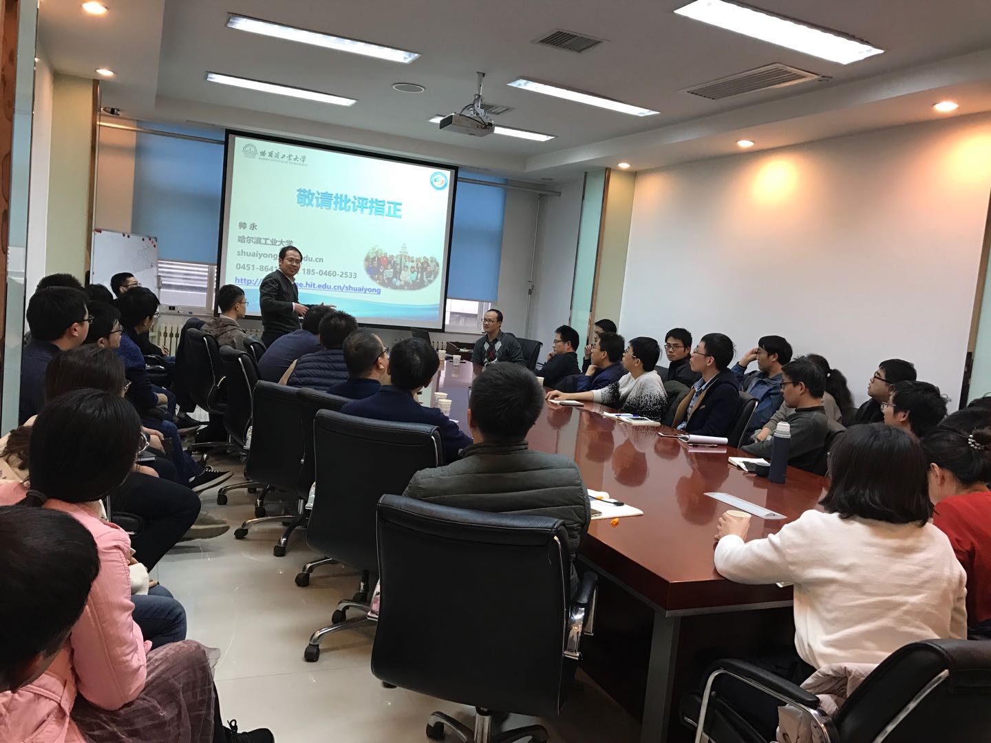 11月29日,应化工学院魏进家教授的邀请,北京石油化工学院宇波教授,哈尔滨工业大学帅永教授于11月29日来访课题组进行学术交流,并先后为课题组师生做了相关学术报告,课题组全体教师及研究生参与了这次报告。