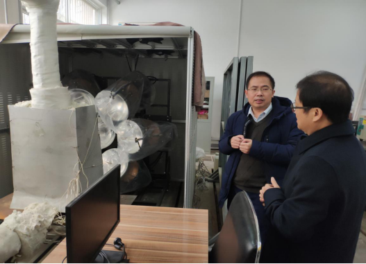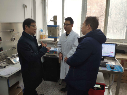 在魏院长的陪同下,雷教授还参观了化工学院部分实验室。在化工实验楼的222实验室中,博士生王新赫向雷教授详细介绍了“基于化学链技术的太阳能热化学反应”的基本原理和实验平台,介绍了载氧体在两步化学链反应中所起到的关键作用,并介绍了生成气体的在线监测方式。雷教授对载氧体技术产生了浓厚的兴趣,并与在场的老师和学生交流。他表示,外加场的氧化偶连反应和化学链技术具有一定的共通之处,可以相互交流、加深理解。