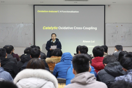 2019年1月4日,应化工学院魏进家院长的邀请,武汉大学高等研究院副院长雷爱文教授访问了化工学院并给来自化工学院、理学院、前沿院等学院慕名而来的师生开展了一场精彩的讲座。雷爱文教授主要的研究方向为小分子的活化,旨在发展高效的、绿色的、和环境友好的合成方法学。
