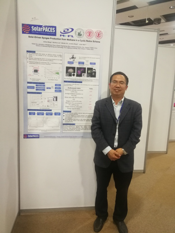 2019年9月29日至10月4日,魏进家教授参加了在韩国大邱召开的2019年太阳能发电和热化学系统国际会议及第33届太阳能热化学研究任务II的年度会议。作为国际能源署太阳能热化学组织的中方协调人,代表中国作报告汇报了中国方面2019年在太阳能热化学方面取得的进展。 并进行了太阳能驱动甲烷干重整制合成气的海报展示。