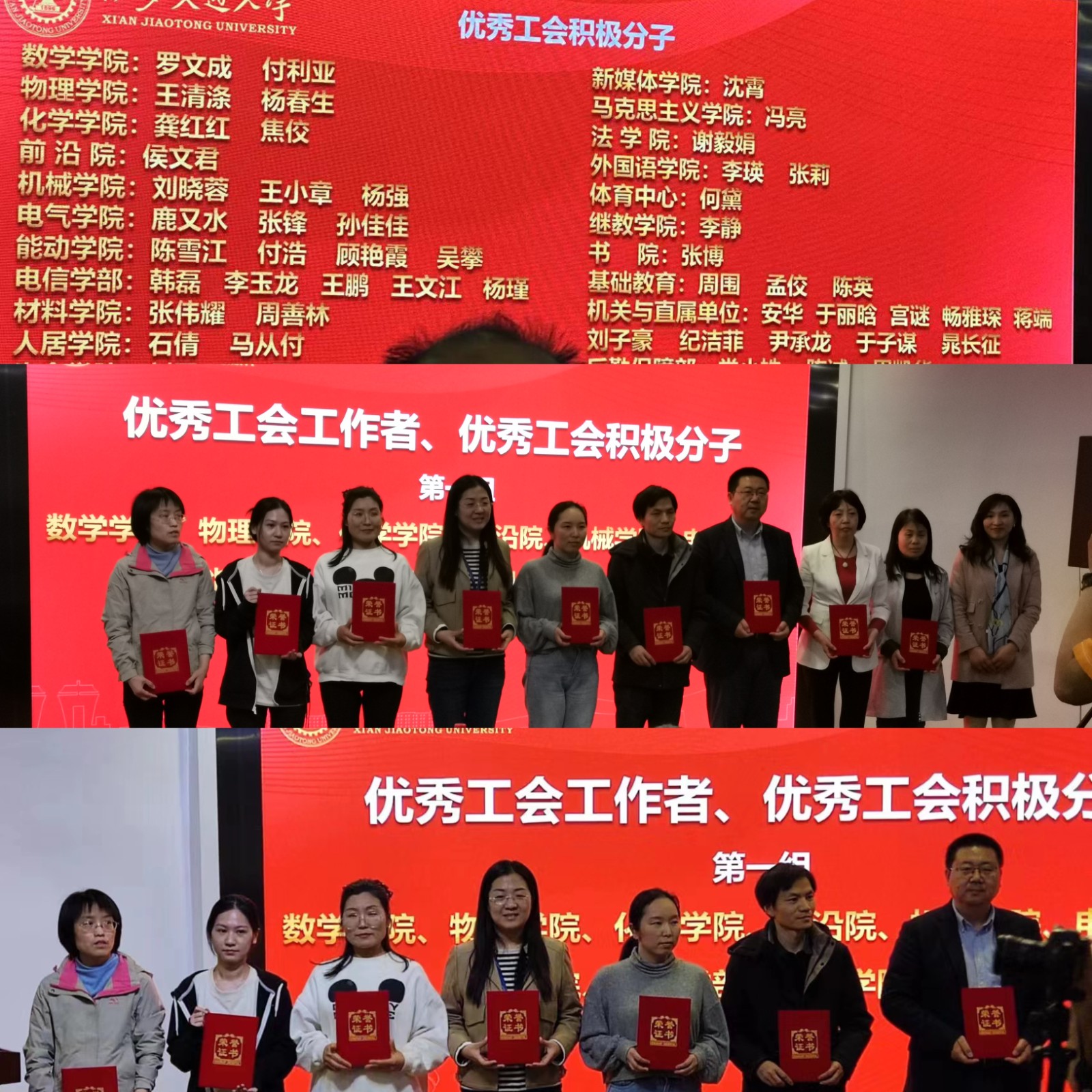 2022年11月 焦佼老师获得西安交通大学优秀工会工作者留念
