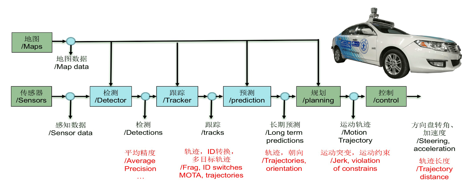 Our goal is to develop computational cognitive models and systems, which can perceptually process sensing information of dynamic environment via multiple  heterogeneous sensors , and improve the efficiency and perceptual quality of the perception system for a unmanned vehicle. We focus on incorporating into the system with mechanisms including selective attention, visual feedback, and structural information of spatial topology, etc. Furthermore, we develop intelligent motion decision-making methods as well as efficient perception-action models  for autonomous driving. Our research covers the following topics: