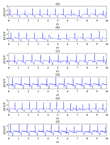 受运动伪影干扰的ECG信号 混合算法处理后的ECG信号