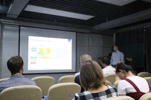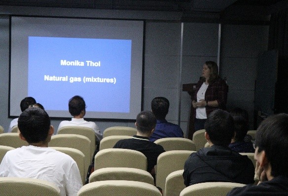 德国波鸿大学Roland Span教授和学生于2019年10月2日访问了热力学小组,并与学生一起作了“Thermodynamics at Ruhr-University Bochum”的学术报告。分别介绍了德国波鸿大学Span教授课题组的研究领域、天然气混合物的物性与状态方程、含氨的二元混合物的亥姆霍兹能量状态方程、富含氢的混合物状态方程以及盐水混合物的相关方程和模型。会议结束后,孟现阳教授, 博士生: 崔军卫和邱硕,分别就课题组以及各自的研究领域进行了介绍。当日下午,Span教授与学生以及日本庆应义塾大学Akira Nagashima教授参观了热力学小组实验室,大家在热力学性质领域进行了深刻的交流与讨论。
