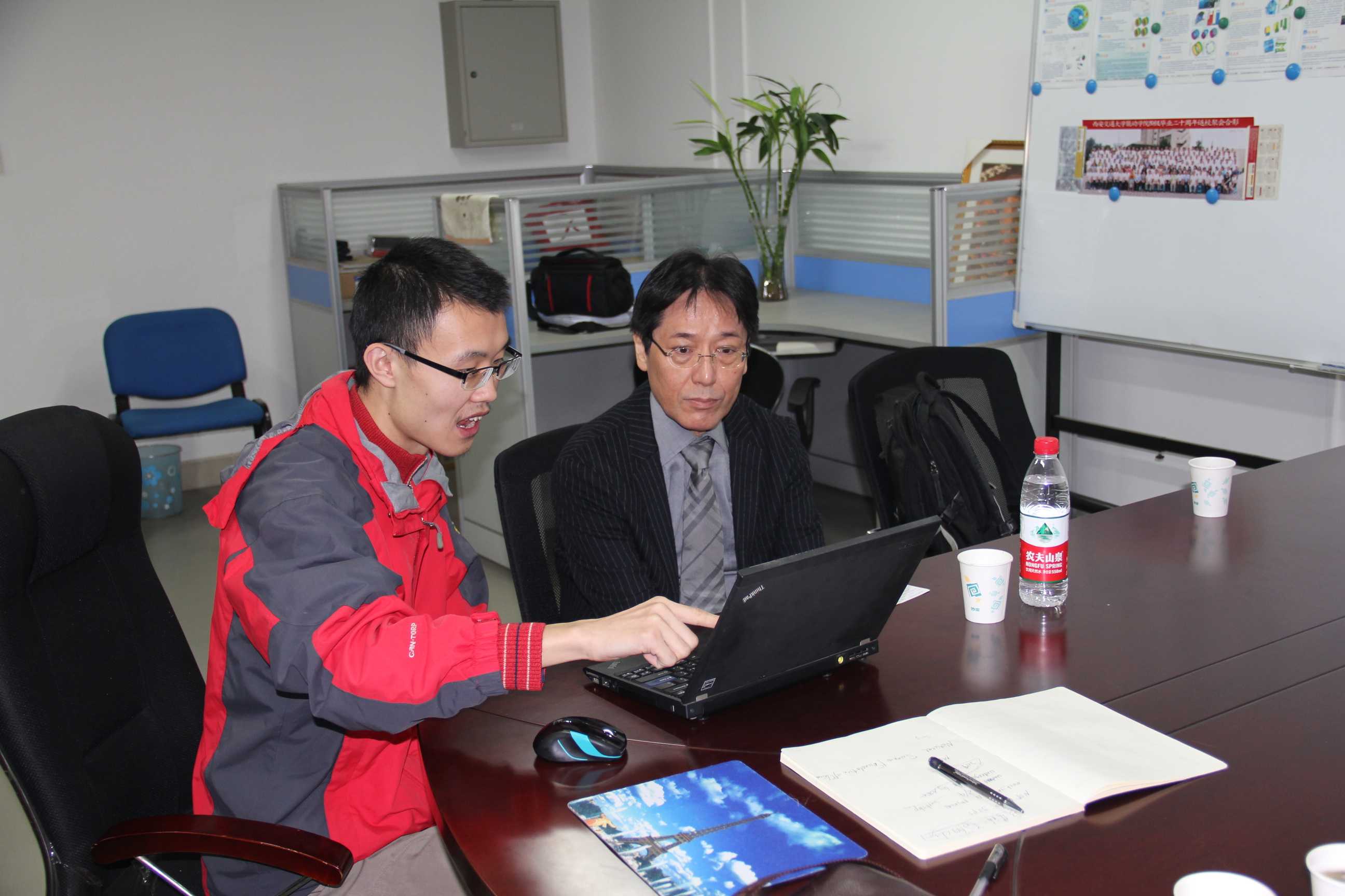 内容: 2013年10月22日至24日,日本东北大学流体科学研究所大林茂教授应邀 访问西安交通大学叶轮机械研究所。大林茂教授是西安交通大学的客座教授, 目前叶轮机械研究所毕业的罗常博士在大林茂研究室进行博士后研究。 10月23日大林茂教授进行超音速飞机设计的学术报告。 报告结束后大林茂教授与课题组的宋英杰博士生和郭振东和聂俊硕士生在多学科优化设计和数据挖掘方面进行了讨论和交流。