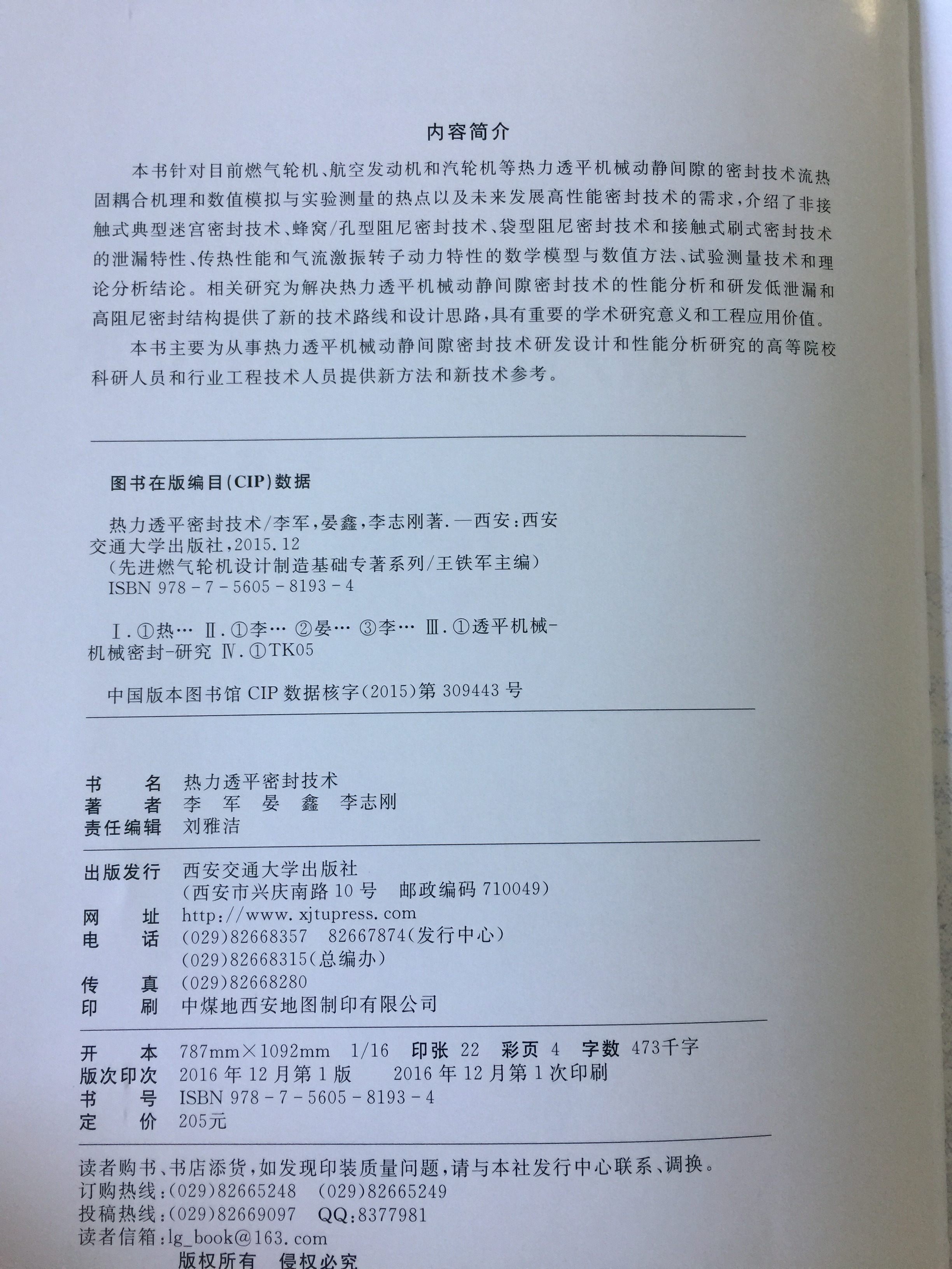 《热力透平密封技术》西安交通大学王铁军教授任主编的先进燃气轮机设计制造基础专著系列丛书其中一部。