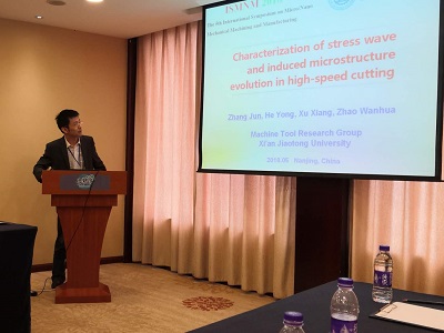 - 第五届微细纳米机械加工与制造国际研讨会(International Symposium on Micro/Nano Mechanical Machining and Manufacturing,ISMNM 2018)于2018年5月8日-11日在南京召开,课题组赵万华教授和张俊教授应邀赴会,博士生许祥和硕士生戚宇彤一同参会。本次会议中,来自日本、美国、德国和中国的业内专家围绕微细加工的关键基础及应用、微切削刀具设计及高精高效加工技术的发展等主题进行了交流和讨论。张俊教授应邀作分会场报告“Characterization of stress wave and induced microstructure evolution in high-speed cutting”,研究引起热烈关注。