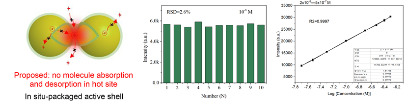本项目设计了一种基于限域增强拉曼光谱技术实现定量化高通量监测分子浓度的平台:利用活性封装壳层将分子限域并锚定在等离激元纳米粒子表面,以避免待测分子的吸附-解吸附行为,在不损失灵敏度的情况下提升分子的定量能力。该方法在治疗药物监测和个性化医疗方面具有很大的临床应用潜力。
