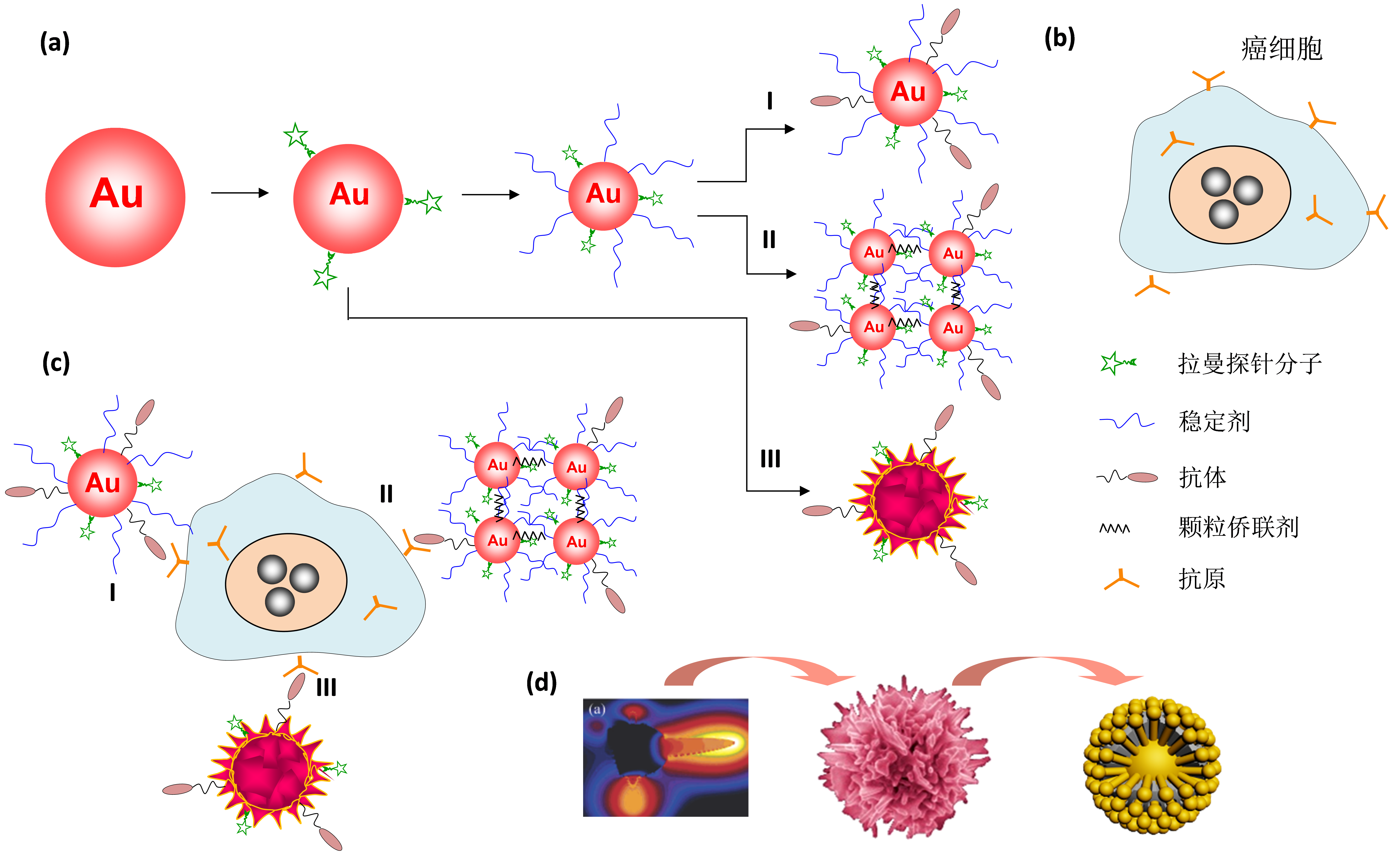 (3)构建纳米传感器:用于细胞检测和细胞内检测,主要包括生物组织的荧光成像、生物分子和病菌分子的表面增强拉曼检测、癌症与肿瘤细胞的光热治疗等。