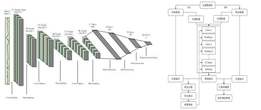 当今全球癌症的死亡率依然位居前列,癌症的诊断主要有以下三种方式:血清学检测结合影像学检查,但这种检测的方式的灵敏度比较低;第二种方式为影像学检查,如MRI、CT和US对癌症检测具有高灵敏度和特异性,但这种成像测试存在空间分辨率有限;第三种方式为活检,活检是癌症病理诊断的推荐标准。然而,这种方法通常需要切片和染色,以及训练有素的病理学家来解释组织图像。综上所述,需要更快和非破坏性的体外甚至体内研究癌症的技术。使用拉曼光谱结合卷积神经网络,以快速、非破坏性和无标记的方式成功区分了癌组织和相邻的非肿瘤组织。