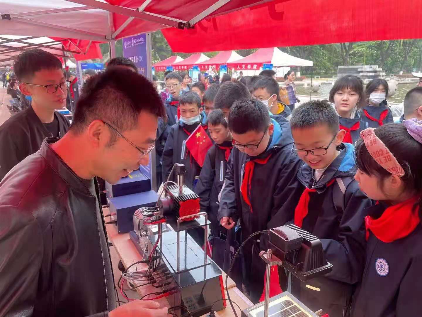 4月10日,西安交通大学举行“开放共融 筑梦未来”校园开放日活动,实验中心在能动学院专区向中小学生展示了能源与动力专业具有代表性的仪器设备,所展示的“空气热机”、“太阳能-燃料电池发电系统”和“临界现象观测实验装置”引起了众多学生和家长浓厚的兴趣,为每位前来参观的学生和家长进行了讲解。