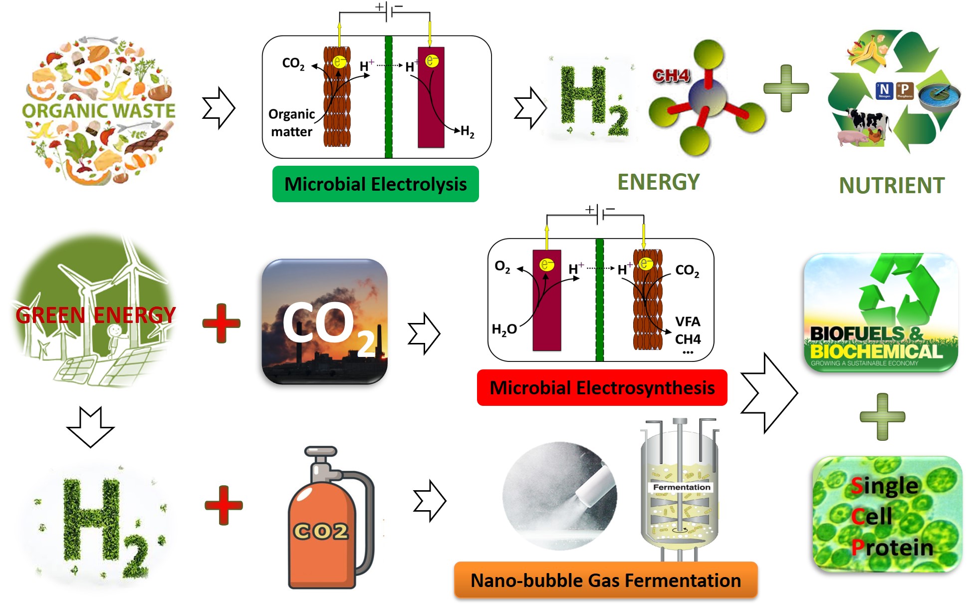 (1)电能驱动的微生物固碳产菌体蛋白和生物塑料;