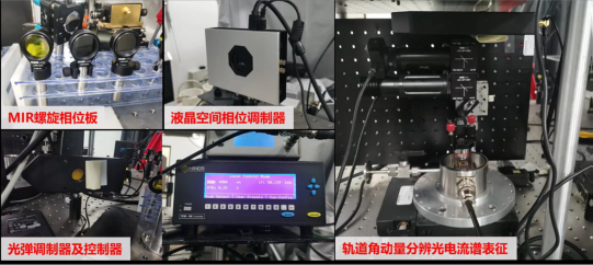 基于上述光电流谱系统,通过结合中红外螺旋相位板,课题组搭建了中红外4μm波段的OAM光电探测系统,可实现最高达4阶的中红外OAM的快速光电流探测。该系统可以集成显微低温系统,电场调制和磁场调制,能够方便地开展外场调控的中红外波段OAM光电探测的研究工作。