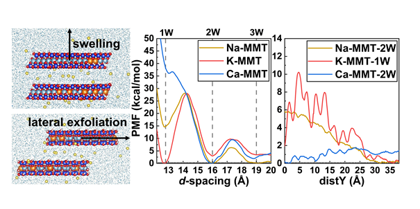 刘钰寒同学的文章“Molecular Dynamics Study on Swelling and Exfoliation Properties of Montmorillonite Nanosheets for Application as Proton Exchange Membrane”被ACS Applied Nano Materials接收,该项工作探究了蒙脱土纳米片层的溶胀和剥离性能,指出蒙脱土片层剥离主要以片层间滑移的方式进行,剥离难易程度与插层离子种类、溶胀程度、表面电荷分布等有关。祝贺钰寒!