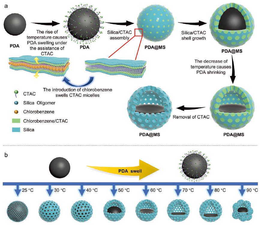 54. M. Qiao, Y. Xing, L. Xie, B. Kong, F. Kleitz, X. Li, X. Du*, Temperature-regulated core swelling and asymmetric shrinkage for tunable Yolk@Shell polydopamine@mesoporous silica nanostructures, Small 2022, 18, 2205576
