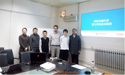 2016年1月22日,本课题组中的两名法国留学生DOYHAMBOURE--FOUQUET Jonathan 与BRAULT Charles 参加了在快速成型工程研究中心举办的2016年西安交通大学硕士学位论文答辩。吴九汇教授、贺健康教授、王玲副教授及毕业生导师田小永副教授担任答辩委员会委员与答辩学生热烈讨论,并对研究成果予以出高度评价,最终两名学生均顺利通过答辩。