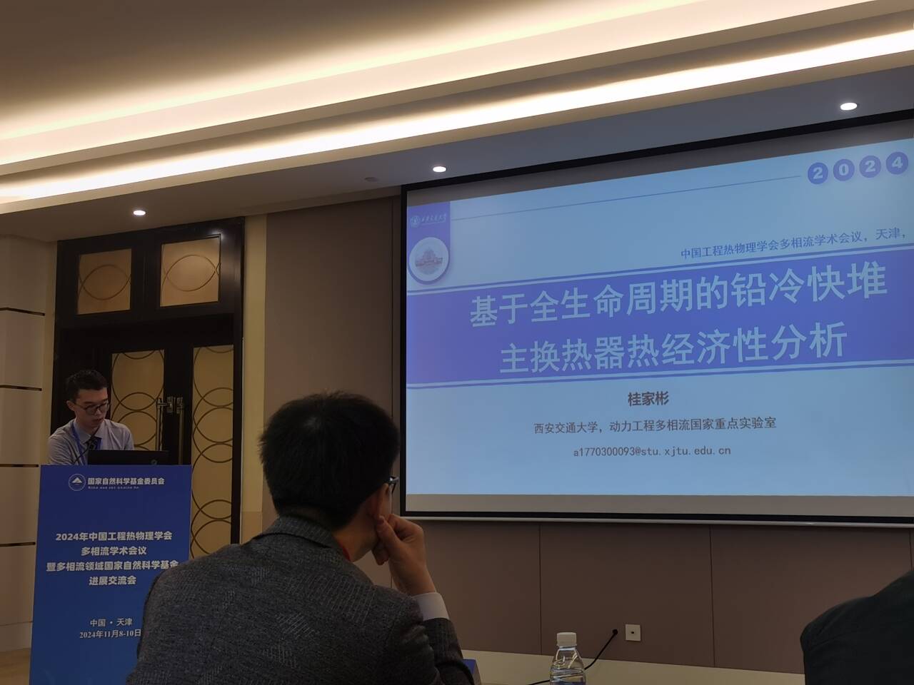 - 2024年11月,中国工程热物理学会多相流年会,中国天津。李良星老师与课题组成员桂家彬,郭译文参加。桂家彬同学进行了铅冷快堆主换热器热经济性分析的汇报。